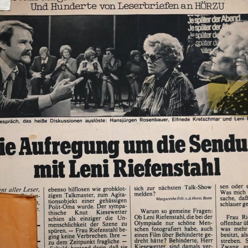 Η Λένι Ρίφενσταλ θεωρείται μία από τις πιο αμφιλεγόμενες γυναίκες του 20ού αιώνα σαν καλλιτέχνης και προπαγανδίστρια του ναζιστικού καθεστώτος. Οι ταινίες της Triumph of the Will και Olympia αποτελούν σύμβολα άψογα σκηνοθετημένης λατρείας του σώματος και εξύμνησης του ανώτερου και νικηφόρου. Ταυτόχρονα, οι εικόνες αυτές εκπέμπουν περιφρόνηση για το ατελές και αδύναμο.